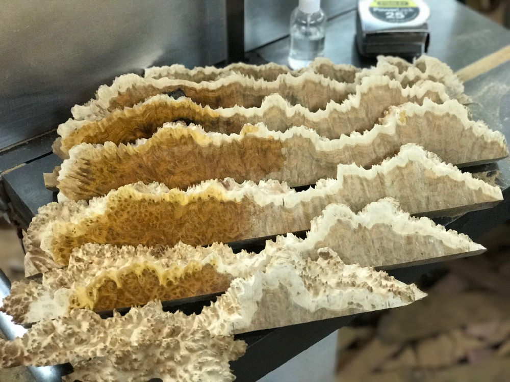 No charge when purchasing a whole burl burl cap or block to cut as specified (within reason)
